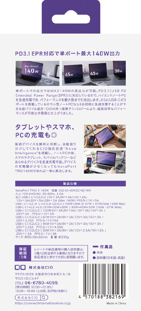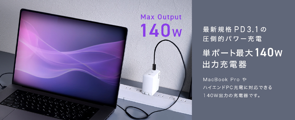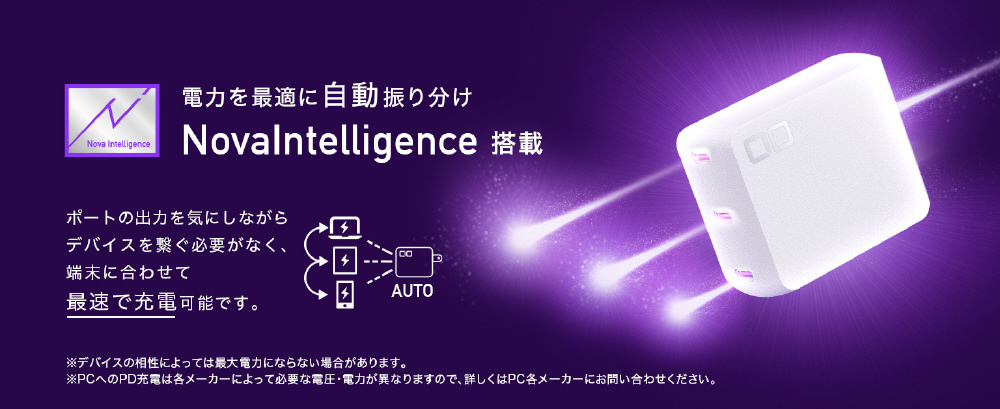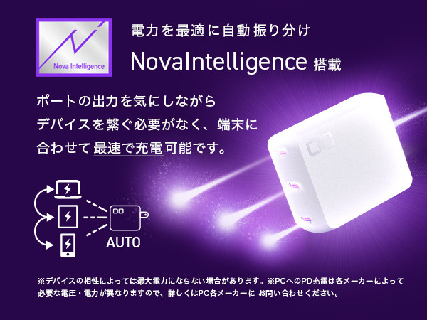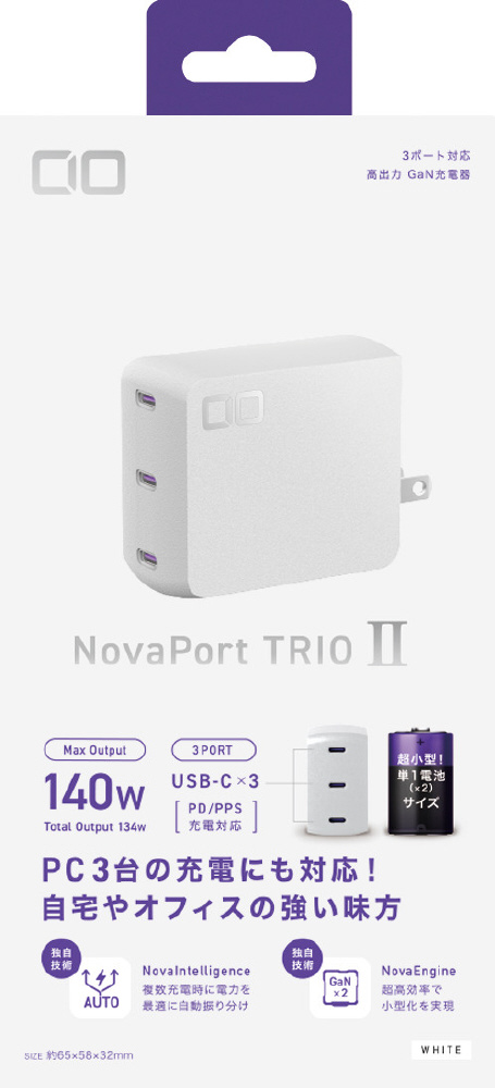 140W充電器で圧倒的な小型化複数同時充電時の出力を最大限活かすCIO独自技術NovaIntelligenceを搭載