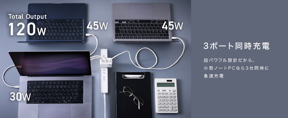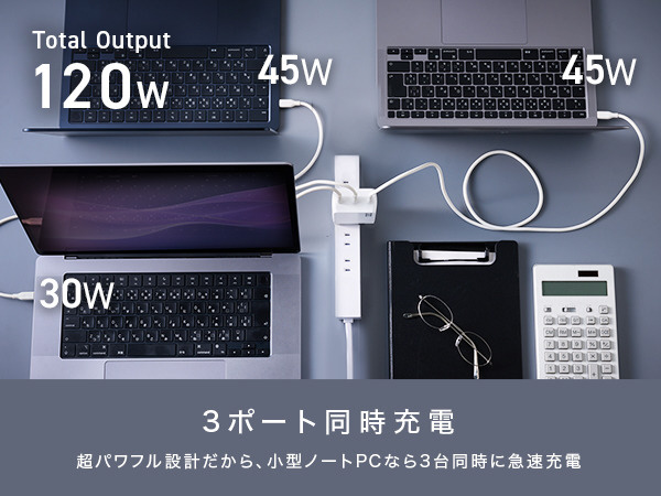 PC3台の充電にも対応!自宅やオフィスの強い味方