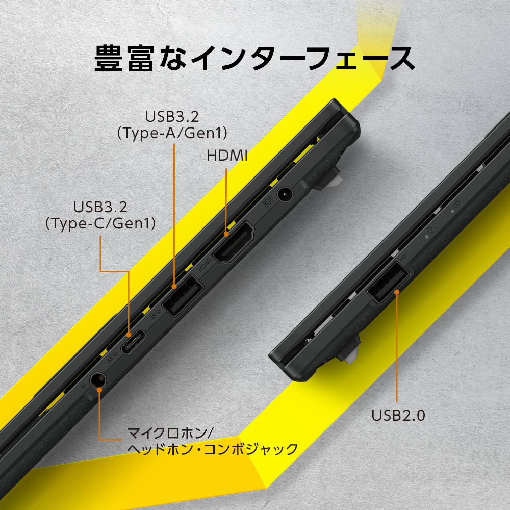 | インターフェイス | ディスプレイ出力:HDMI×1 USBポート:USB3.2 (Type-C/Gen1) ※×1、USB3.2 (Type-A/Gen1) ×1、USB2.0×1