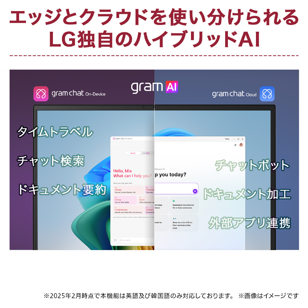 どこへでも気軽に持ち運べる14インチのコンパクトモデルで1,120gの軽さを実現。CPUにはインテル Core Ultra 5 プロセッサー 225Hを搭載し、快適なパフォーマンスを発揮するLG gram 2025年モデル