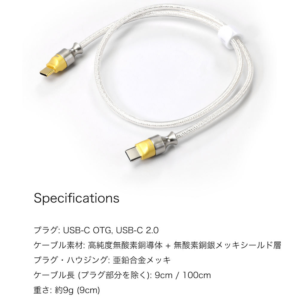 ケーブル素材:高純度無酸素銅導体+無酸素銅銀メッキシールド層