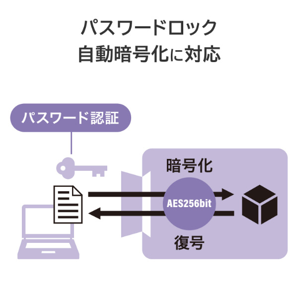 暗号方式には、解読が困難な「AES256bit」を採用。
