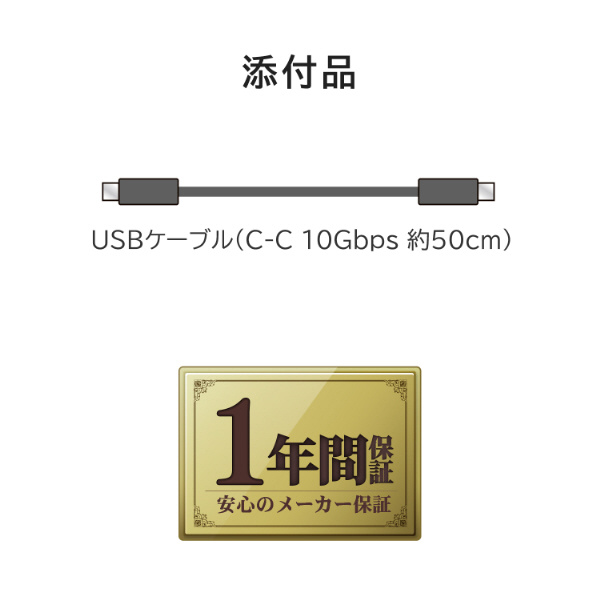 USB 10Gbps(USB 3.2 Gen2)に対応し、読み込み・書き込みともに最大約1000MB/sの高速転送が可能。