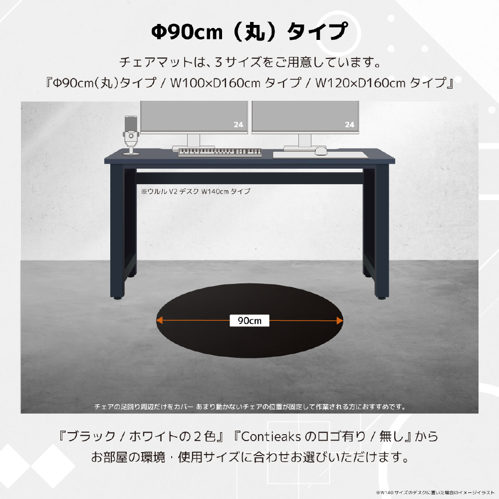 ゲーミングチェアマット [丸型 φ900x2mm] ロゴ入り ブラック 427193