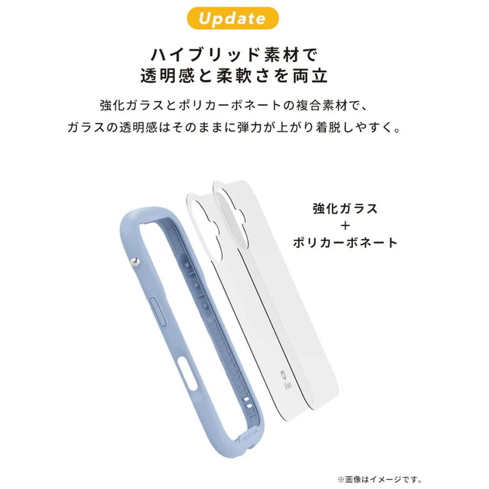 強化ガラスに、柔軟さをプラス。ポリカーボネートとの合成素材を使用することで、着脱しやすくなっています。