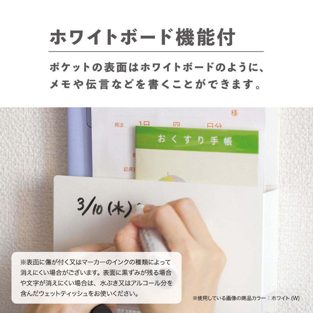 収納しながらホワイトボードのようにメモ書きできる機能をプラスした、使い方が広がる便利なアイテムです。