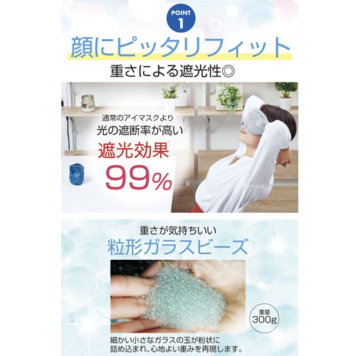 加重アイマスクは重さによる遮光性があり、深く効率の良い睡眠に貢献します。遮光性による効果で入眠効果を最大効率でサポートします。