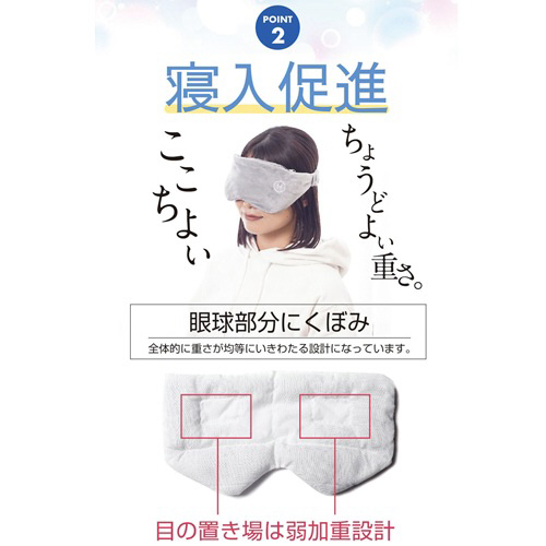目の置き場は弱加重設計。ちょうどよい重さによる心地よさを適切にフィットするように設計されているため、快適に休むことができます。