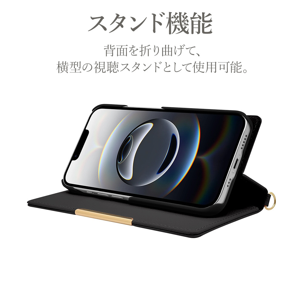 本製品は液晶画面側と背面側の両面を保護できるハンドストラップ付きの手帳型ケースです。