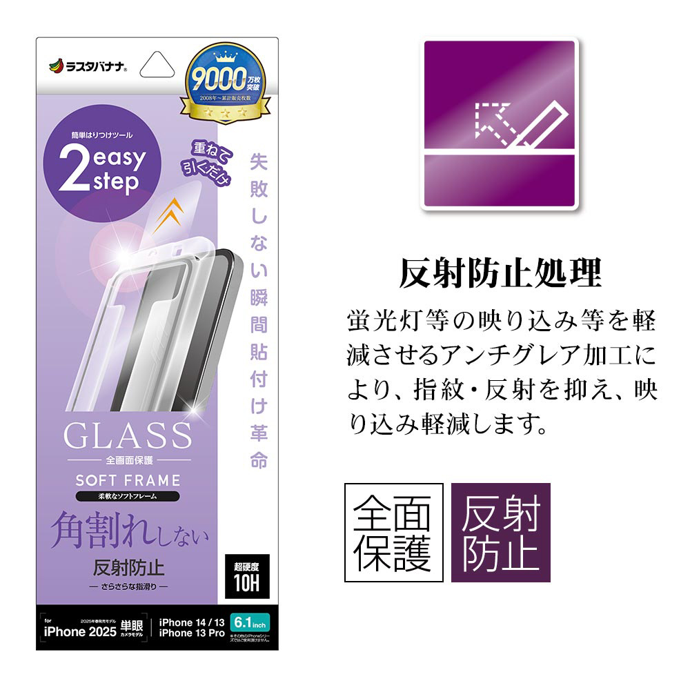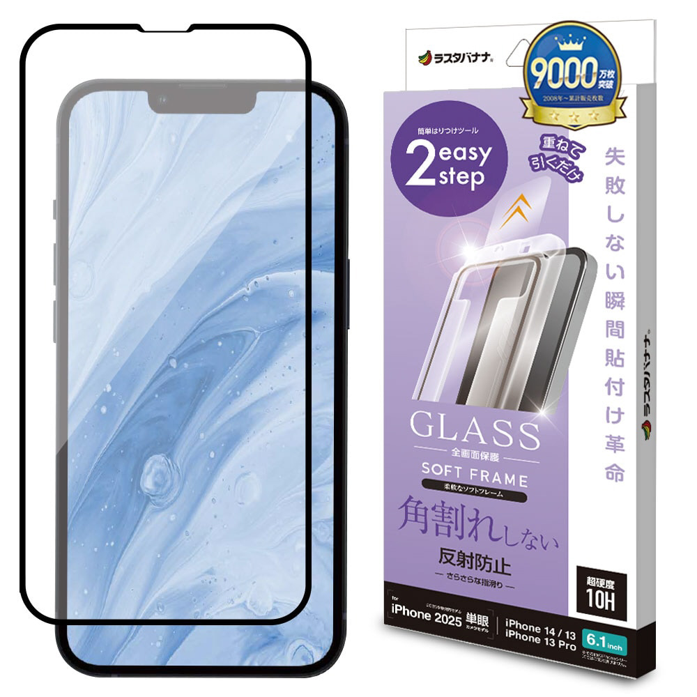 iPhone 16e/14/13/13 Pro ガラスフィルム 瞬間貼り付け革命 全画面保護 角割れしない ソフトフレーム 反射防止