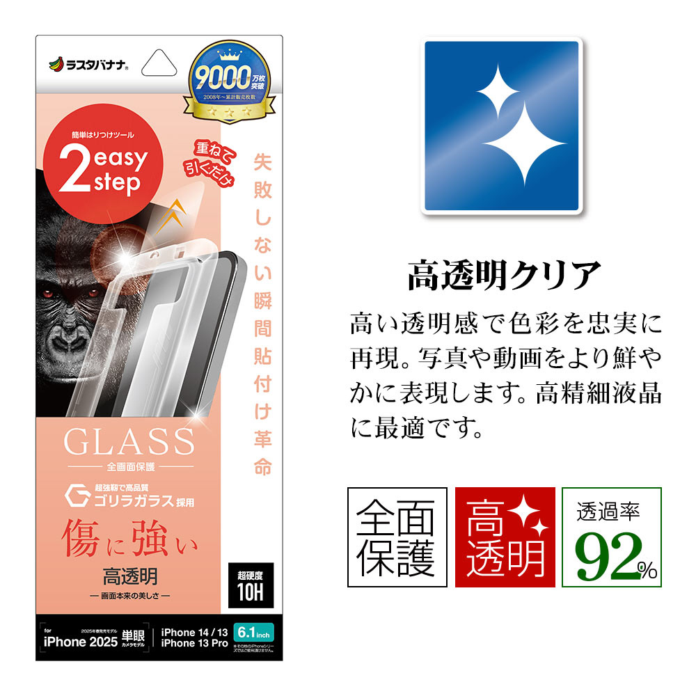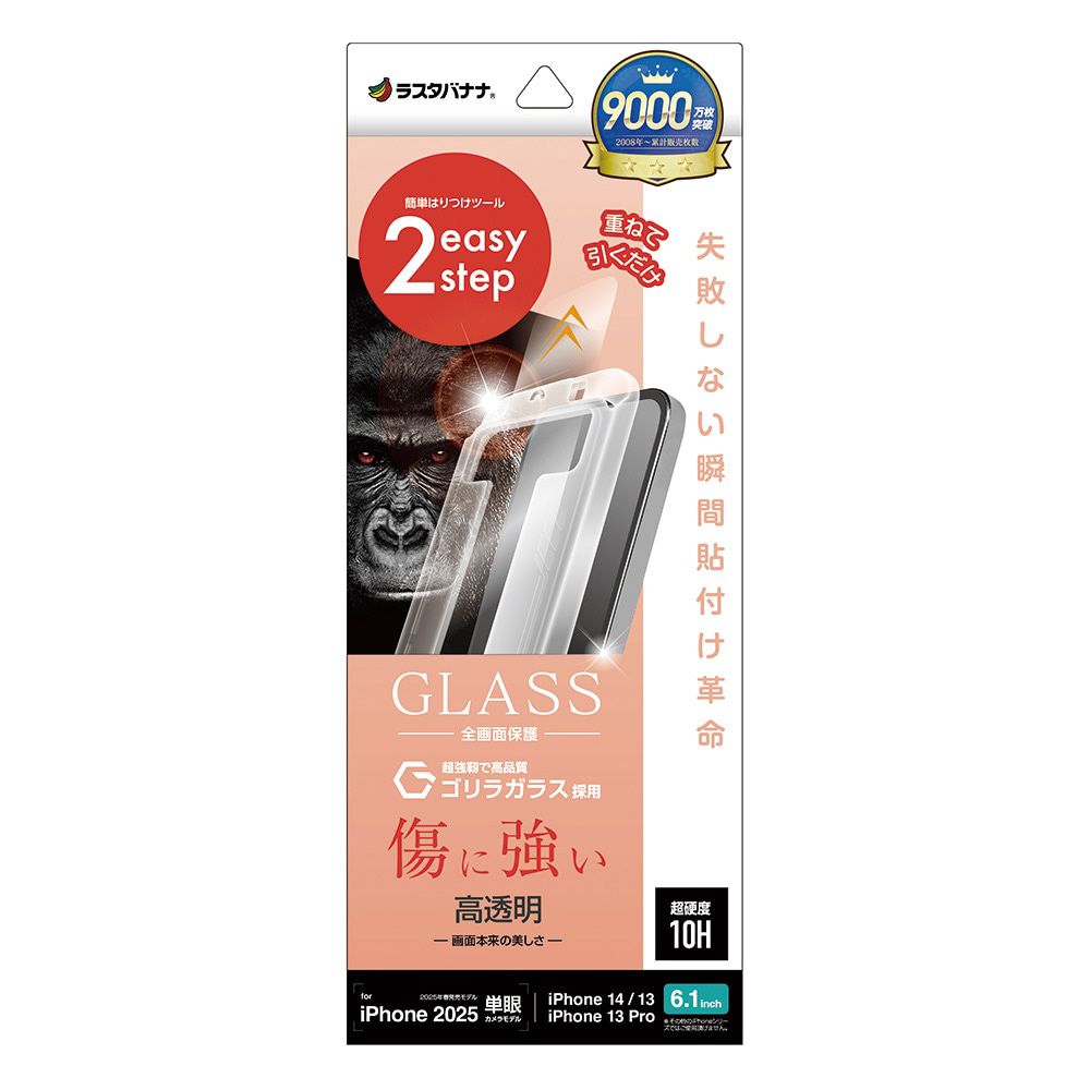 iPhone 16e/14/13/13 Pro ガラスフィルム 瞬間貼り付け革命 ゴリラガラス 高光沢