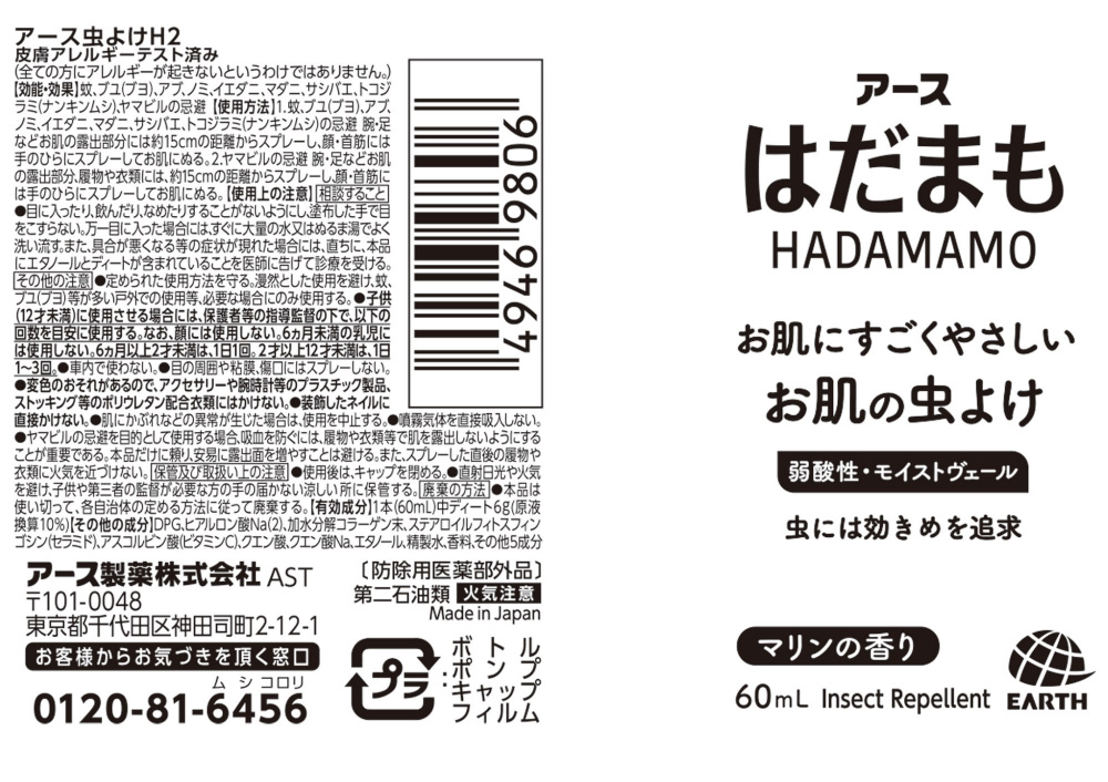 効能・効果1 蚊、ブユ(ブヨ)、アブ、ノミ、イエダニ、マダニ、サシバエ、トコジラミ(ナンキンムシ)、ヤマビルの忌避