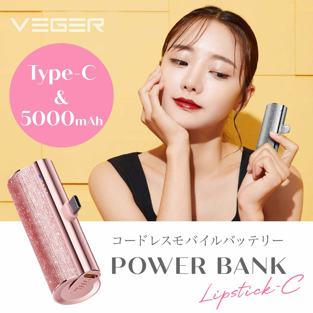 VEGER Power Bank LipStick 5000mAh コードレス モバイルバッテリー