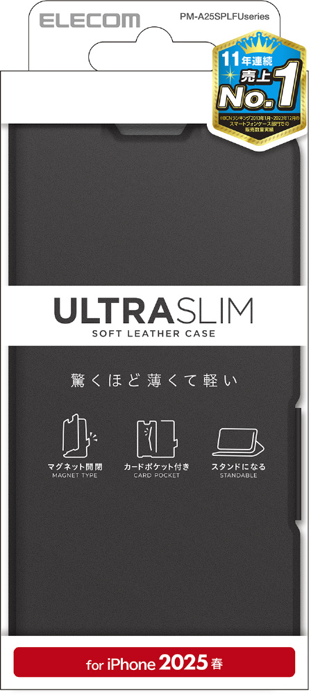iPhone 16e ソフトレザーケース 薄型 磁石付 ブラック