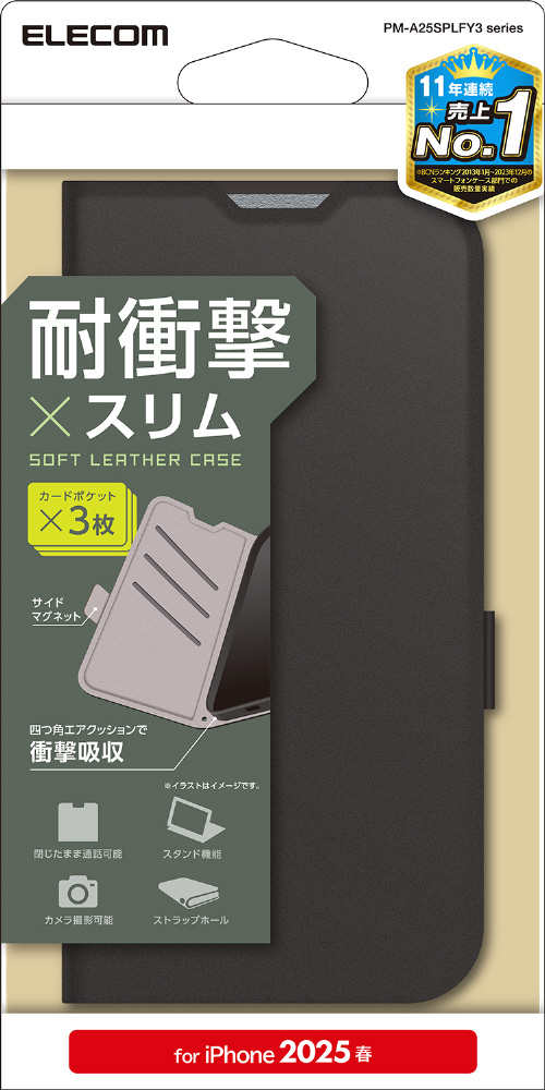 iPhone 16e ソフトレザーケース 磁石付 耐衝撃 ステッチ ブラック