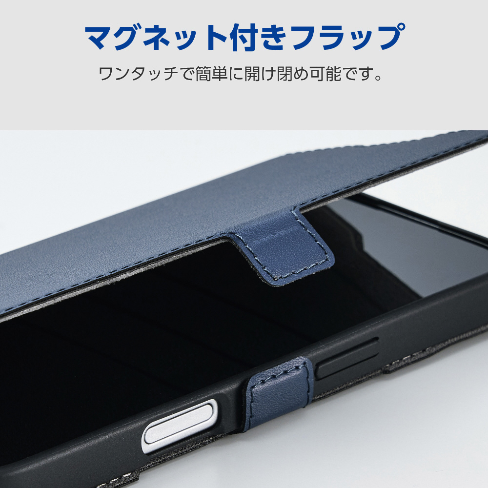 iPhone 16e ソフトレザーケース 磁石付 耐衝撃 ステッチ ネイビー