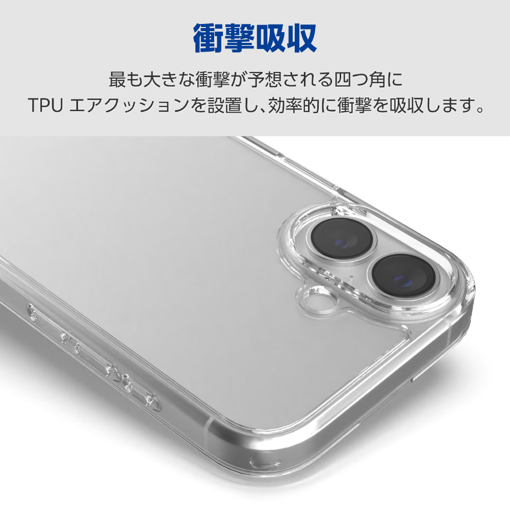 iPhone 16e ハイブリッドケース ストラップホール付 メタルステッカー クリア