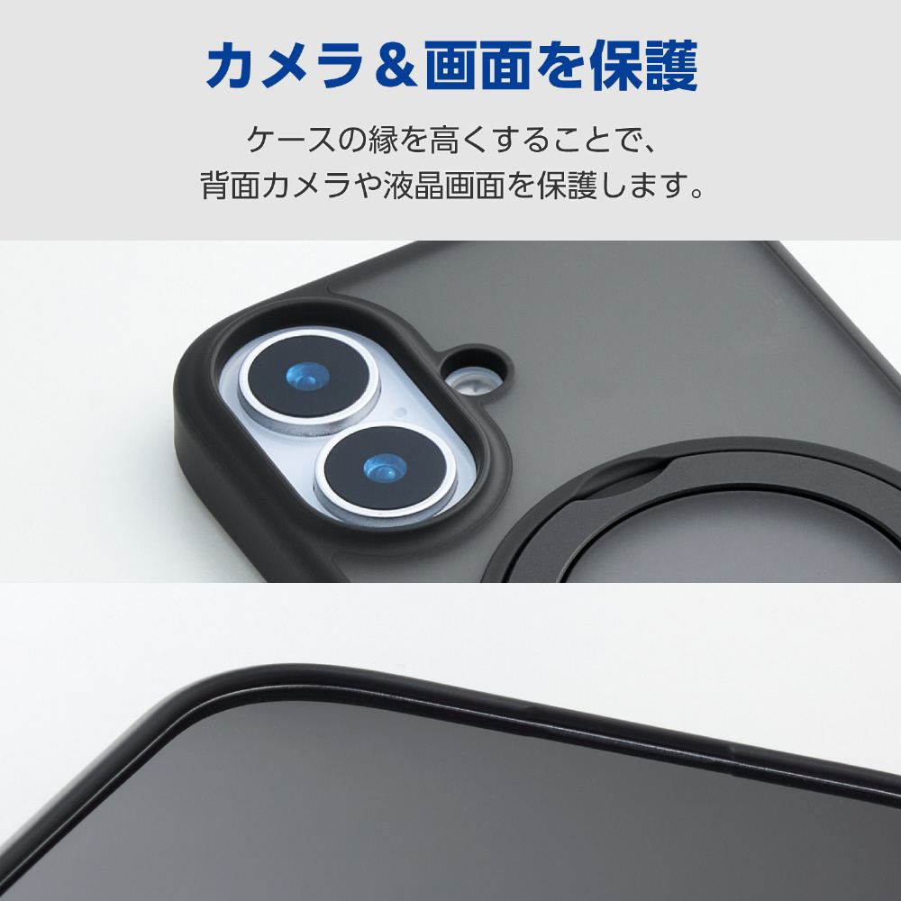 iPhone 16e ハイブリッドケース MAGKEEP スタンド マットブラック