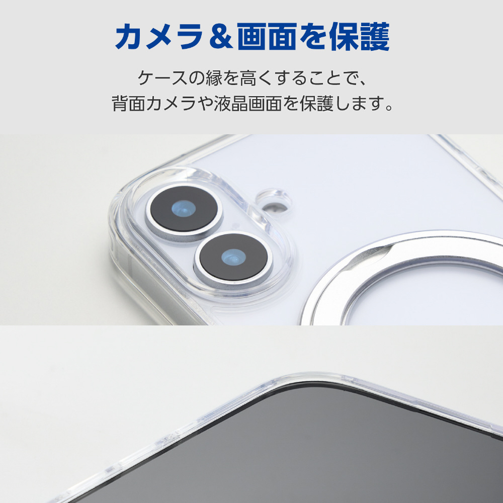 iPhone 16e ハイブリッドケース MAGKEEP スタンド クリア×シルバー