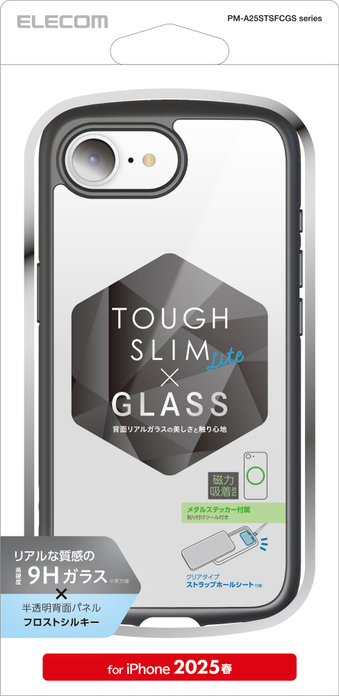 iPhone 16e TOUGHSLIMLITE ガラスシルキー メタルステッカー ブラック