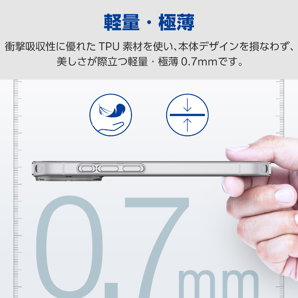 ■端末のデザインを損なわず、美しさが際立つ極薄約0.7mmのケースです。