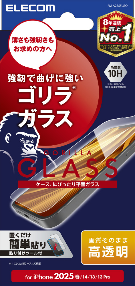 なめらかな指滑りを実現するリアルガラスのGorilla(R)ガラスを使用した薄型タイプの画面保護ガラスフィルムです。