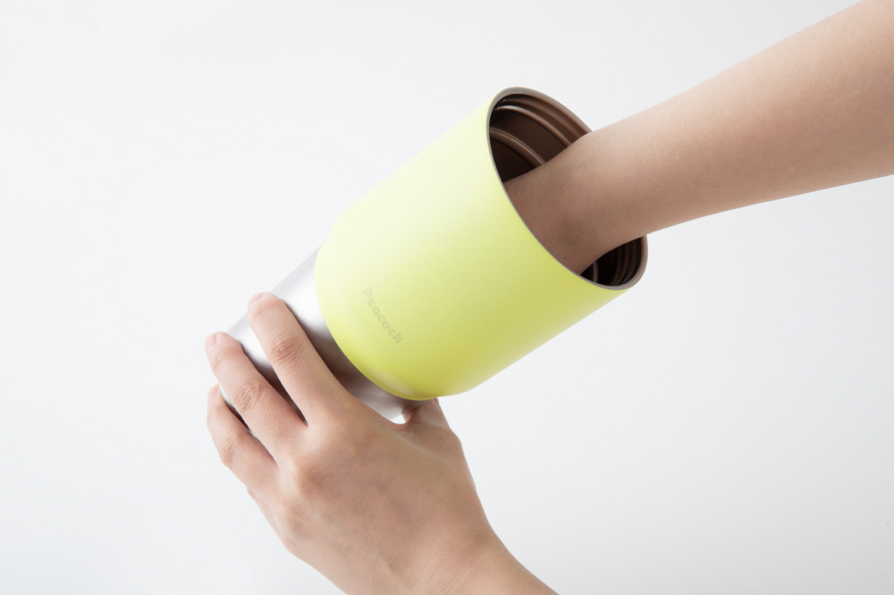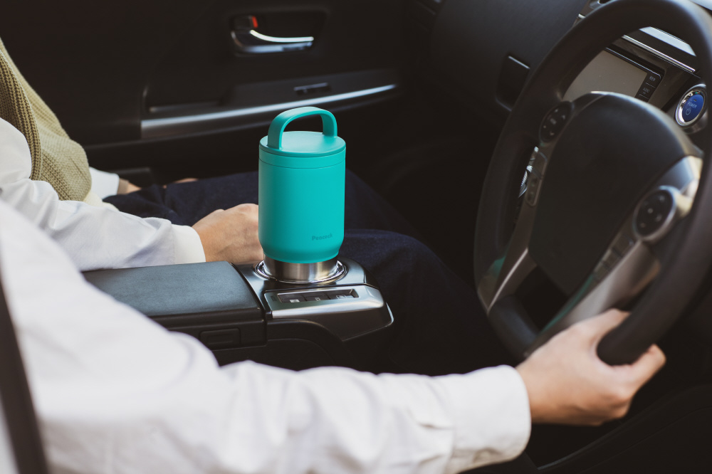 段差のある形状で大容量でも持ちやすく、自動車のドリンクホルダーなどにも入れやすい。
