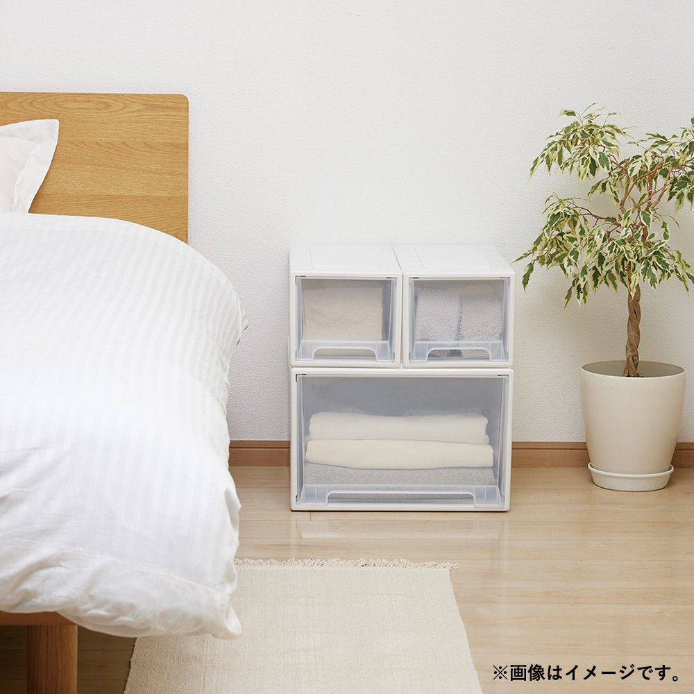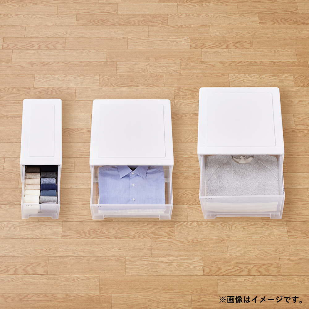 天馬 収納ケース 衣装ケース 小物収納 フィッツケース ワイドハーフ 幅22.5×奥行45×高さ20cm 引き出し 積み重ね 押し入れ クローゼット ホワイトクリア Fits フィッツ