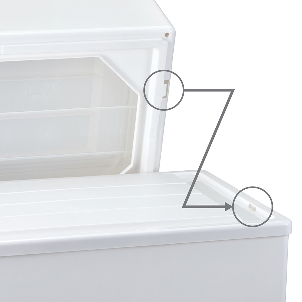■積み重ねてもたわみにくい丈夫な前枠付きです。