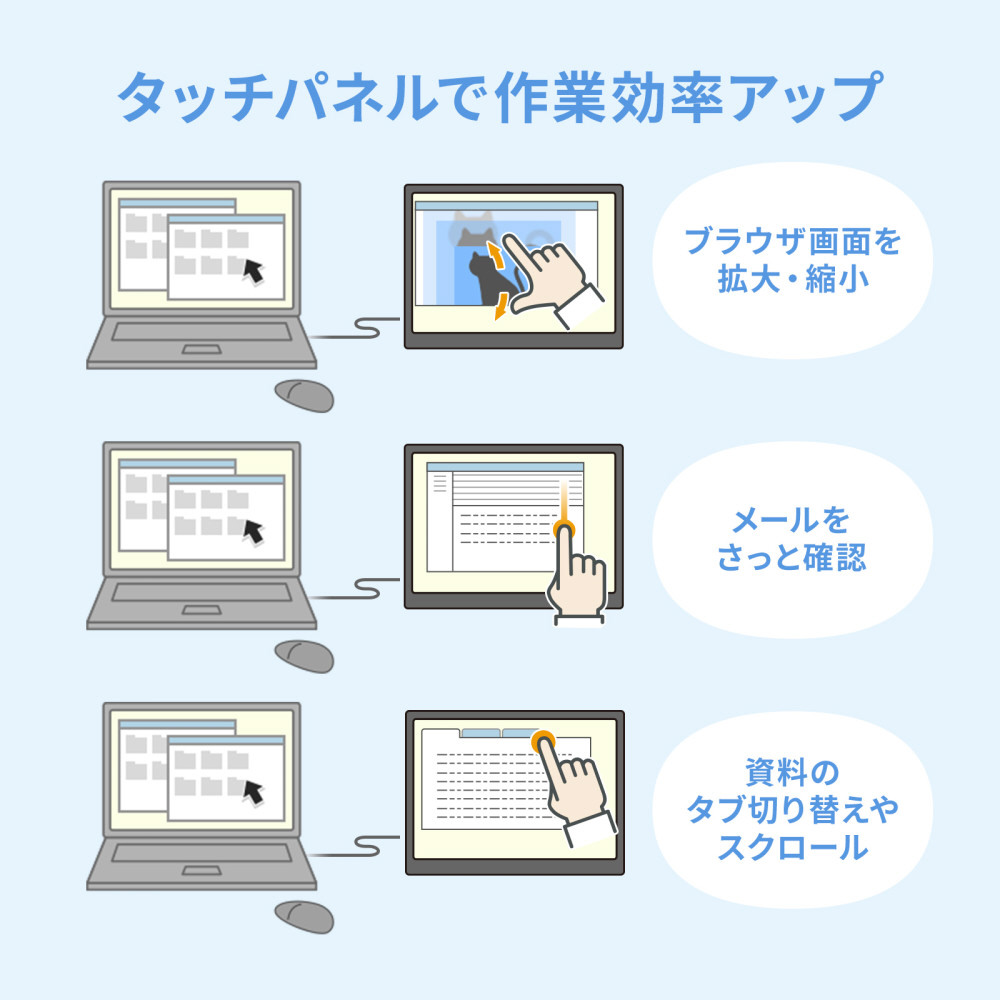 ※タッチパネル操作は接続する機器が外付けディスプレイのタッチパネル操作に対応している必要があります。