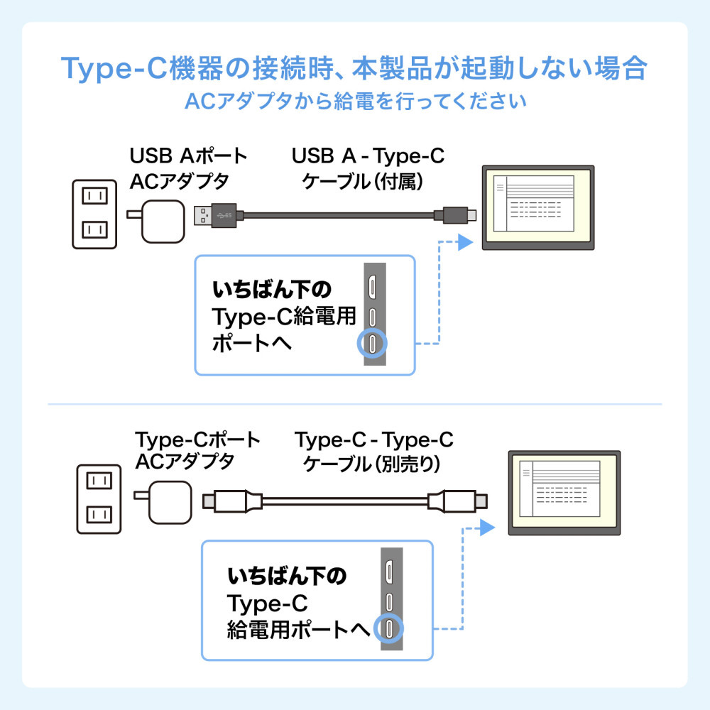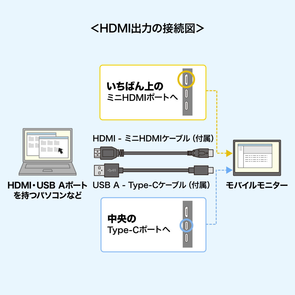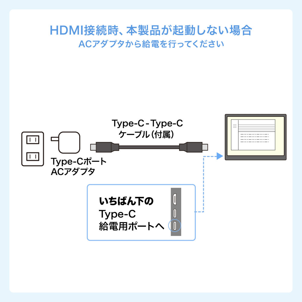 ※本製品をType-C接続する場合、Type-Cハブ・Type-Cドッキングステーション・Type-C変換アダプタ経由では使用できません。HDMI接続は可能です。