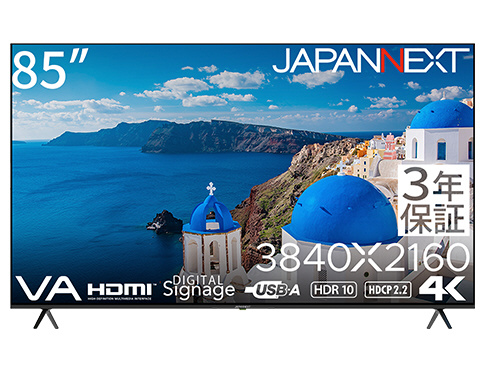 「【3年保証モデル】85インチ VAパネル搭載 4K(3840x2160)解像度 大型液晶モニター HDMI ビデオ/音声入力端子 オプティカル出力端子 コンポーネント入力端子 HDR USB再生対応 サイネージ」
