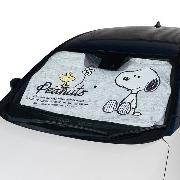スヌーピーデザインの折りたたみ傘型サンシェードパッと開いて簡単セット!