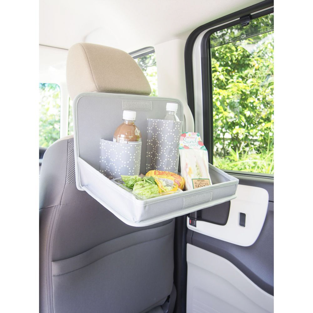 ナチュラルカラーと北欧風デザインがおしゃれなカー用品シリーズです。車内の居心地がもっと良くなる、便利で素敵なアイテムを揃えました。座席のヘッドレストに設置して後部座席で食事や動画鑑賞を楽しめるリアトレイです。食事を乗せてテーブルとして使ったり、透明ポケットにタブレットを入れて動画鑑賞ができます。ポケットに入れたまま操作が可能です。両端には充電コードを通せる穴つき。内側は撥水加工付きで汚れたときでも安心です。【仕様】耐荷重:1kg●透明ポケット:横27×縦17×厚み1cmまでのタブレットが入ります●ドリンクホルダー(2つ):500mlのペットボトルが1本入ります