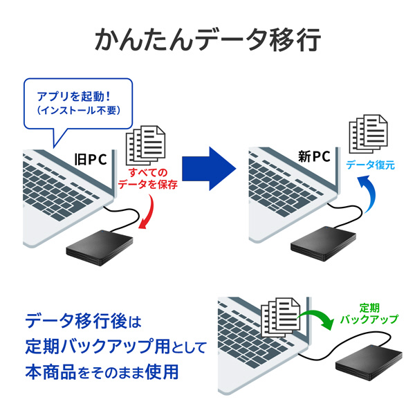 「【かんたんデータ移行アプリ内蔵】USB 5Gbps(USB 3.2 Gen1)対応 ポータブルHDD」