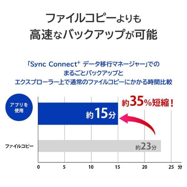 「Sync Connect+ データ移行マネージャー」を使用すると、通常のファイルコピーよりも高速なバックアップが可能です。