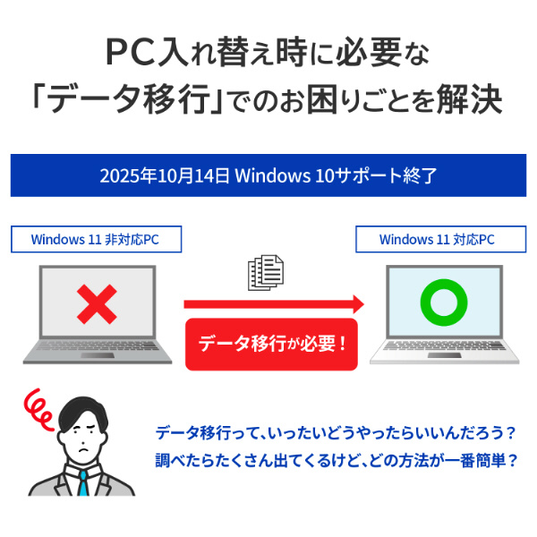 Windows 11非対応のPCを使用している方は、新しいPCが必要で新しいPCを導入するにあたり、必要なのが古いPCからの“データ移行”です。