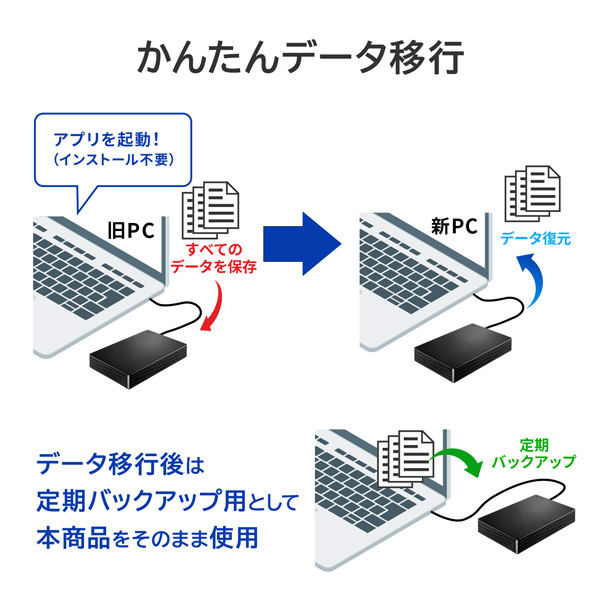 「【かんたんデータ移行アプリ内蔵】USB 5Gbps(USB 3.2 Gen1)対応 ポータブルHDD」