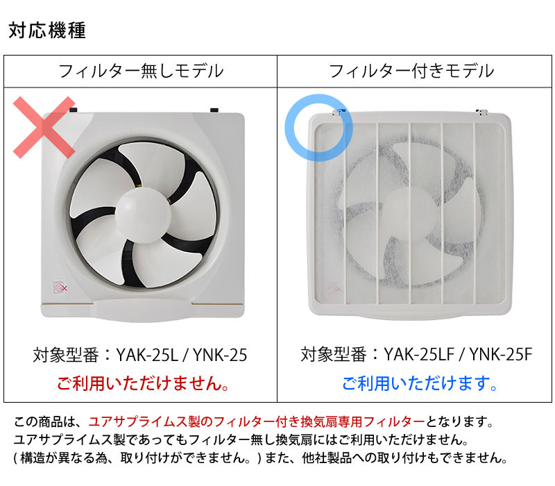 ※ユアサ製であってもフィルター無し換気扇にはご利用出来ません