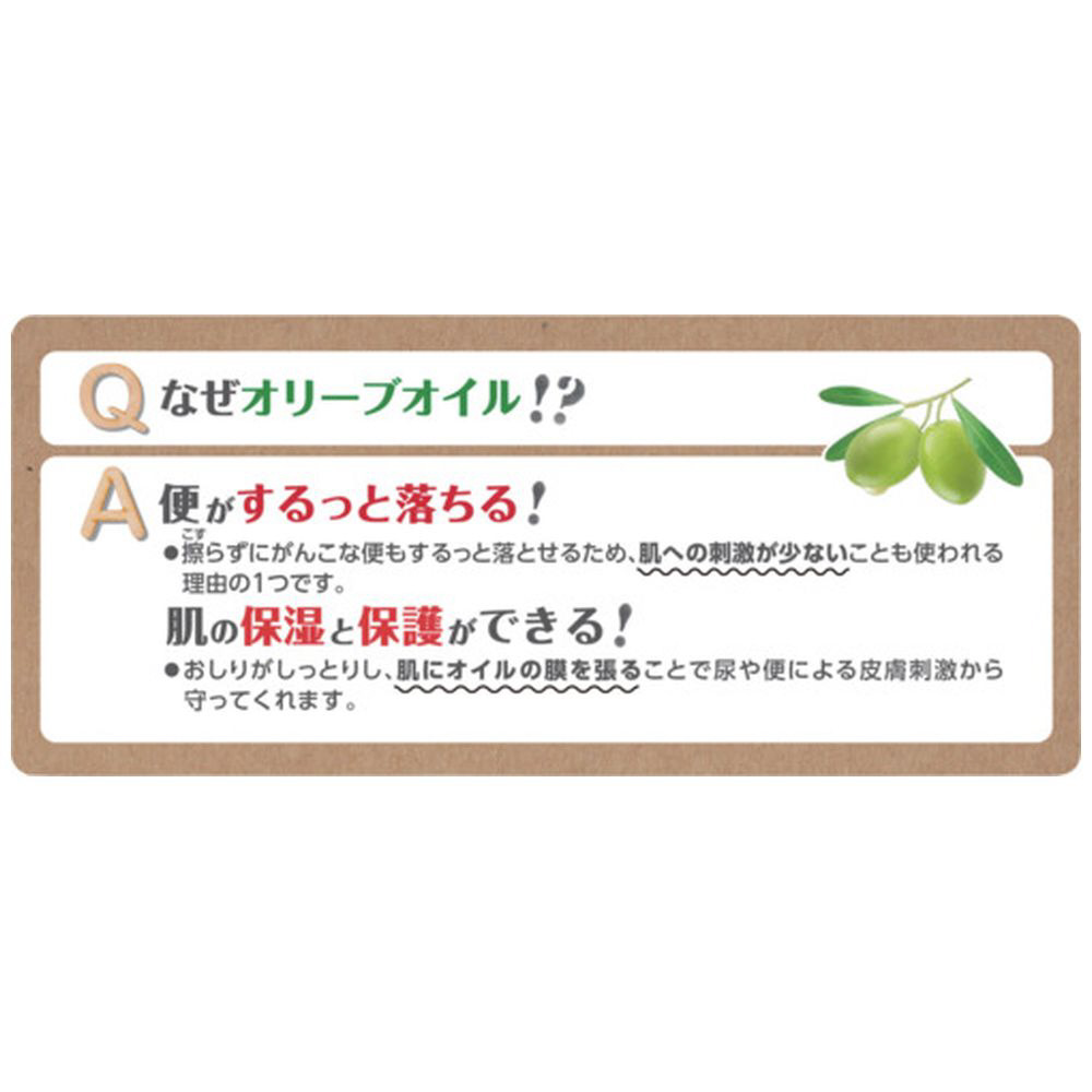 ■天然オリーブオイルを配合し、水分もたっぷり含んでいるため、おしりを擦らず、がんこな便もするっと落とせます。