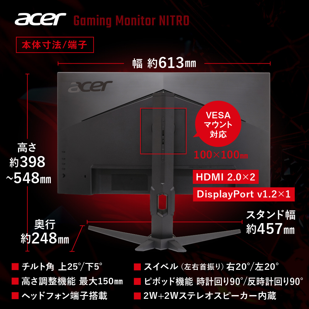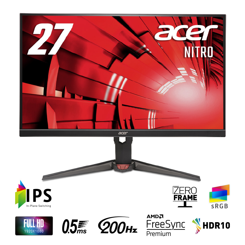 Acer Nitro ゲーミングモニター 27インチ FHD IPS 非光沢 200Hz 0.5ms sRGB 99% AMD FreeSync Premium HDR10 ブラックブースト HDMI 2.0 DisplayPort 1.2 ヘッドホン端子 スピーカー