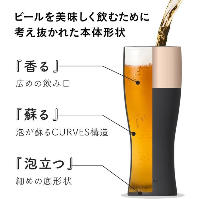 「蘇る」飲み置きの繰り返しで対流が生まれ、泡が蘇るCURVES構造。