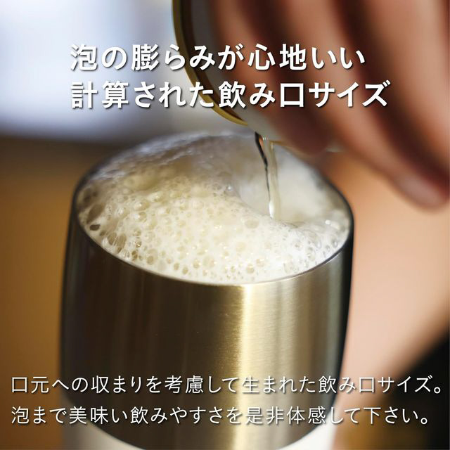 【泡の膨らみが心地いい 計算された飲み口サイズ】口元への収まりを考慮して生まれた飲み口サイズ。