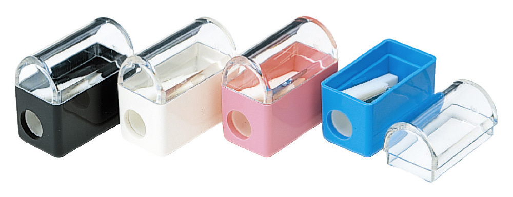 削りカスが収容でき、筆箱に入る小型サイズ。