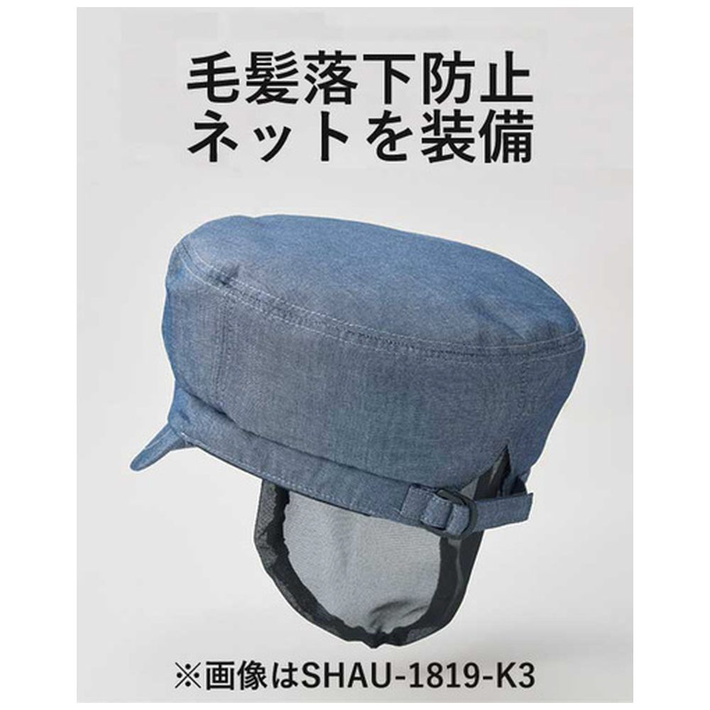 毛髪落下防止ネット付きワークキャップ。色あせしにくい丈夫な素材を使用。飲食店やホテルなど様々な業種で活躍します。