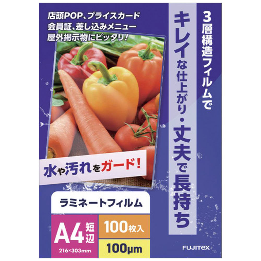 フジテックス ラミネートフィルム100ミクロン A4 100枚入り