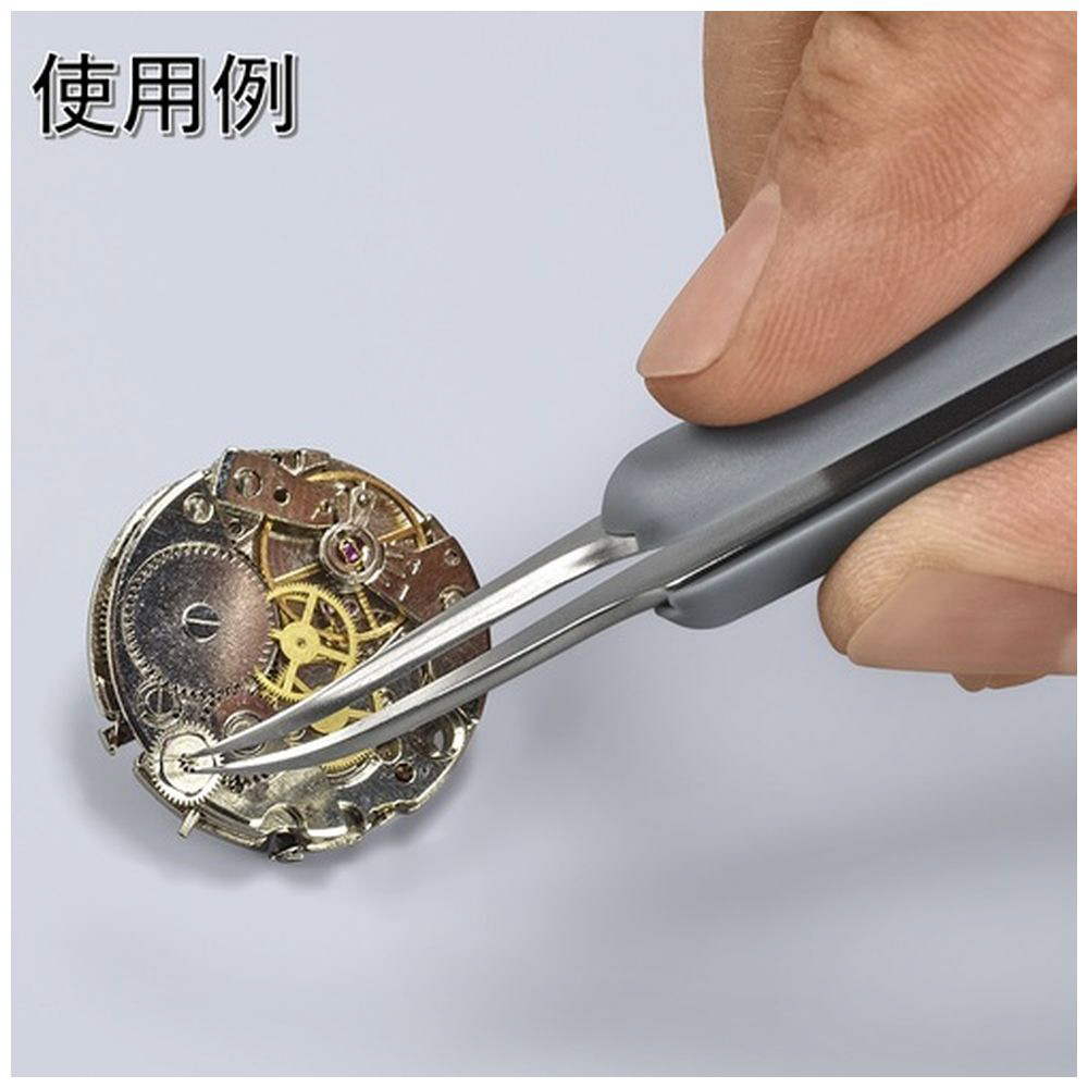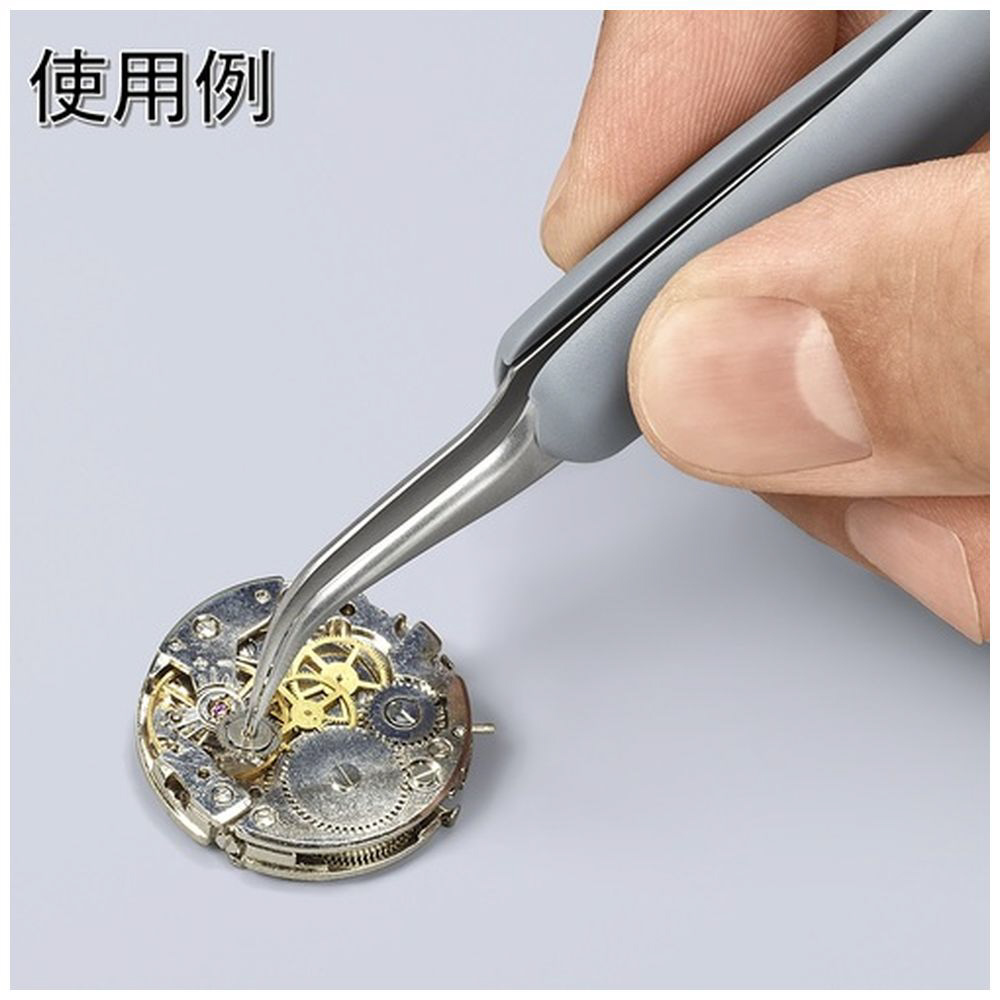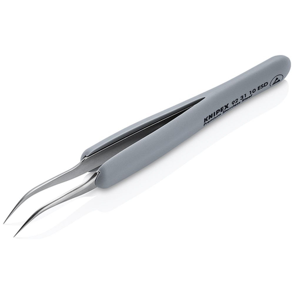 KNIPEX ラバーハンドル付き精密ピンセット 先細・先曲がり 122ММ