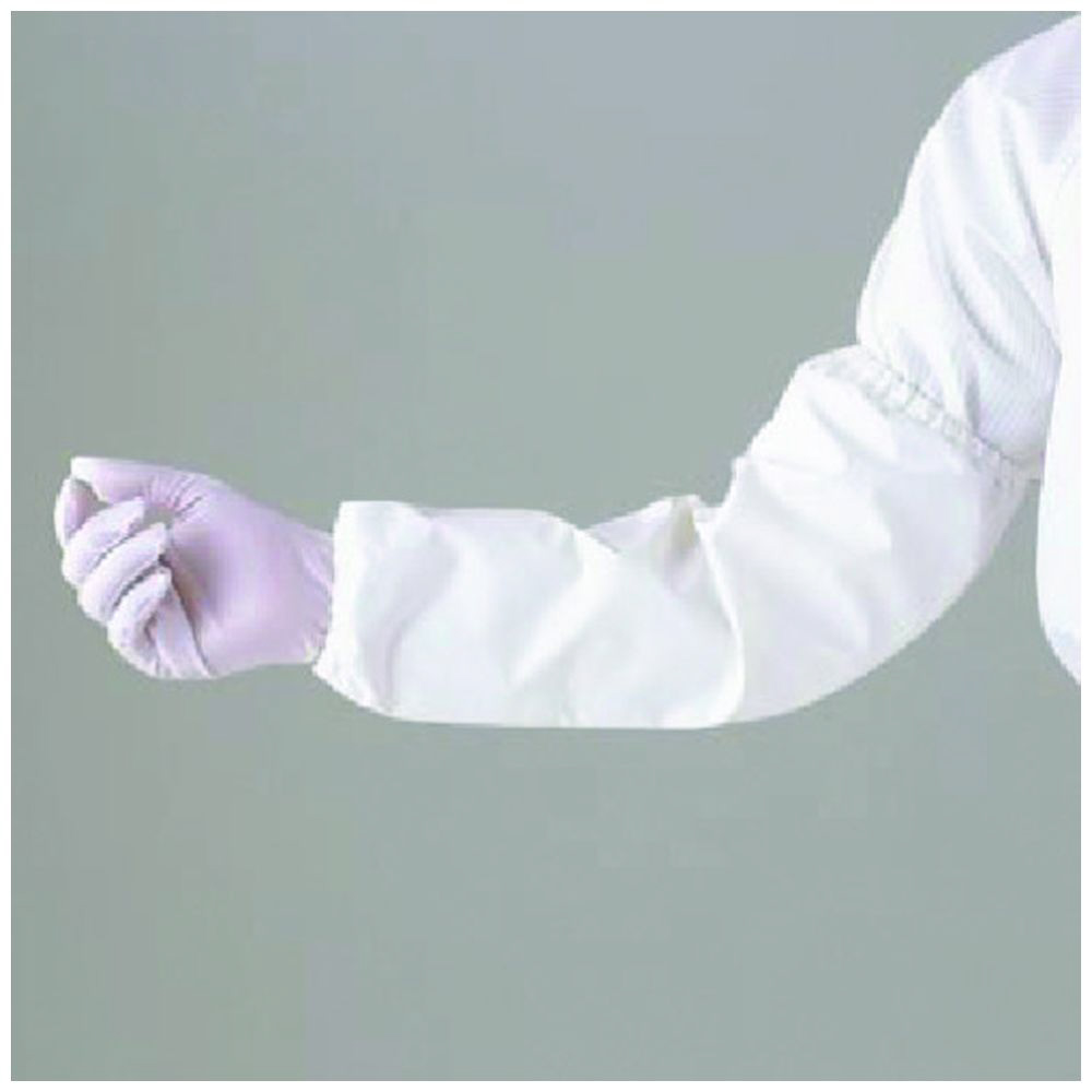 ■防塵服素材の表面にフッ化エチレン樹脂多孔質膜(白色)をコーティングした素材「耐薬プリータ」を使用した腕カバーです。