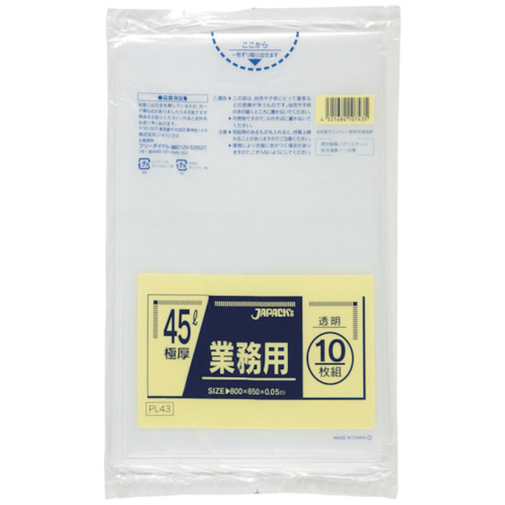 ジャパックス 業務用ポリ袋 45L透明10枚 厚み0.050mm
