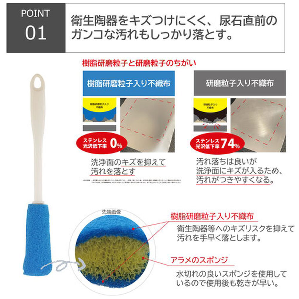 ■衛生陶器よりも柔らかかい樹脂研磨粒子を配合しており、傷を付けにくく尿石などの汚れを落とします。